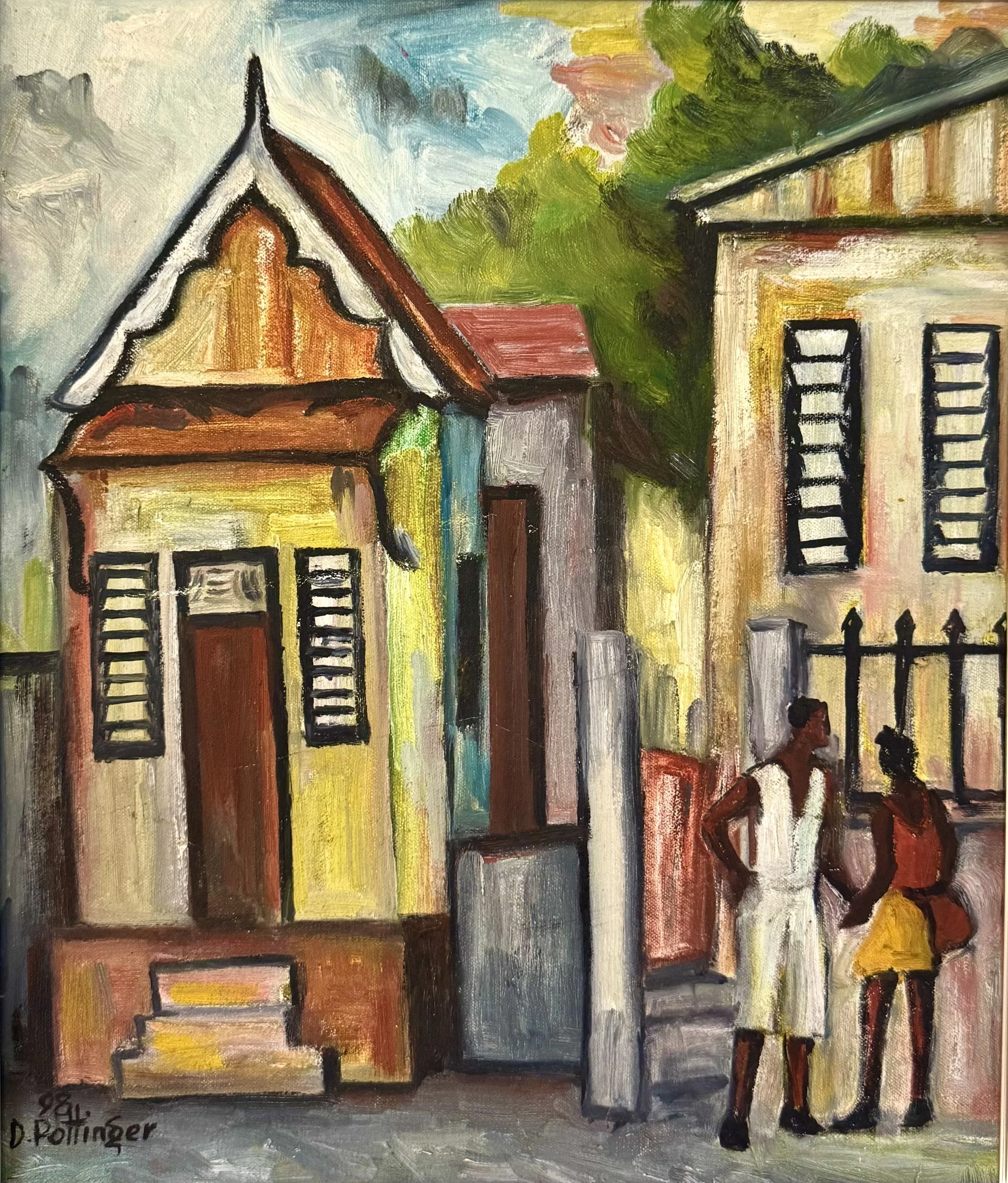 David “Jack” Pottinger (1911–2007) was one of Jamaica’s most celebrated painters, widely regarded for his vivid portrayals of downtown Kingston life and urban culture. Born and raised in Kingston, Pottinger began his artistic journey in the 1940s, developing his talent under the guidance of Edna Manley and quickly becoming a central figure in Jamaica’s emerging nationalist art movement. His work is best known for its rich depictions of everyday city scenes, capturing the energy, dignity, and rhythm of everyday people with expressive colour and form. Over a career spanning more than six decades, Pottinger’s distinct vision and commitment to representing Jamaican urban life earned him a lasting legacy as a master of local painting.